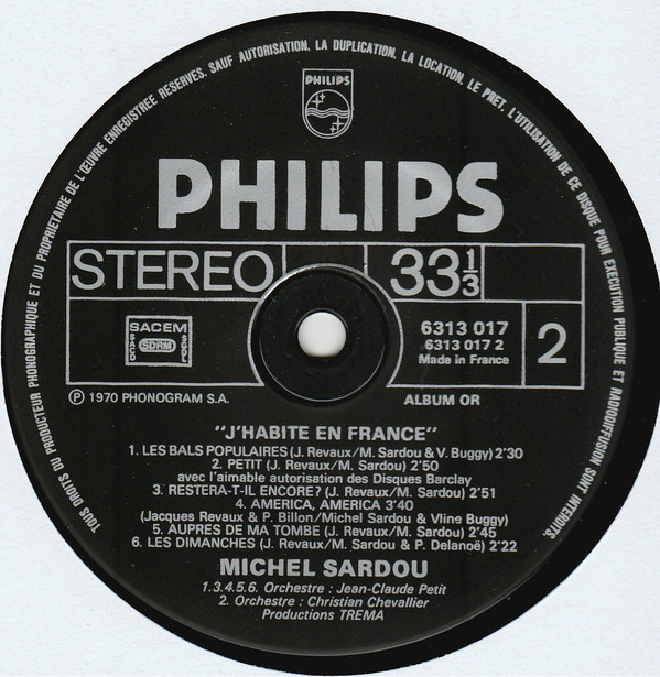 | Titre Label et référence Support Pays Date | Disque d'or Philips 6313 017 LP, Original France 1970 |