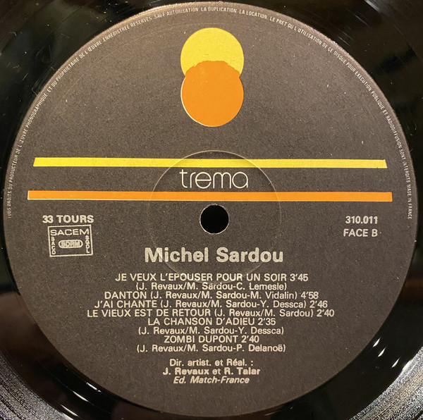 | Titre Label et référence Support Pays Date | Collection Grands succès, vol 1 Trema 310 011 LP, Original France 1976 |